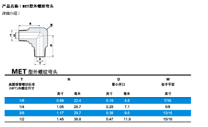 MET型外螺紋彎頭